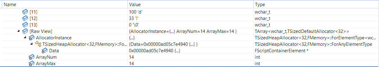 UE_LOG(LogTemp, Log, TEXT("allocated size[FString] = %d"), MyFString.GetAllocatedSize());